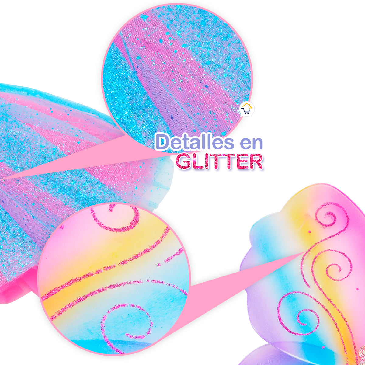 Incluye un tutú de tul rosa y azul con escarcha + alas multicolor que harán que tu peludita luzca como salida de un cuento de hadas.
